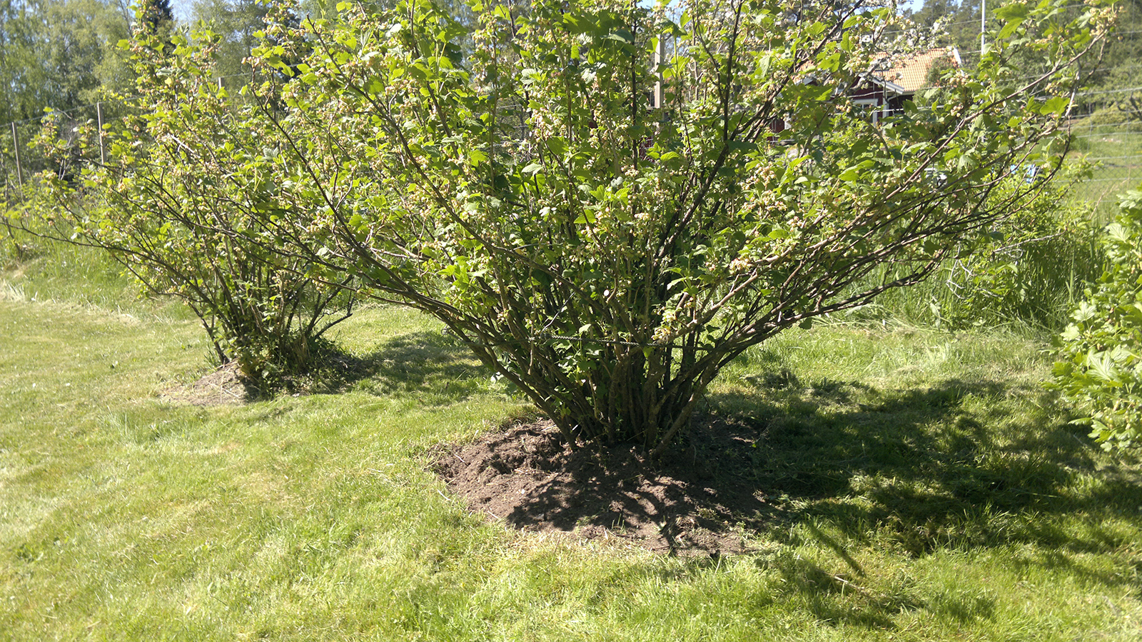 I busken finns en mellanstor rostfri buskhållare placerad. När busken har fått sin vegetation så syns inte buskhållaren